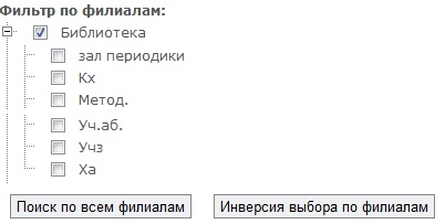 отметьте галочками только те филиалы библиотеки, в которых Вы ищете литературу.